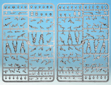 This boxed set offers enough parts to build 20 lightly equipped female characters for Stargrave, ideal for use in independent crews or as members of the pirate fleets hunting them down. While this kit includes a range of weaponry and a mix of alien and human heads, even more variety can be achieved by mixing in components from other Stargrave female boxed sets.